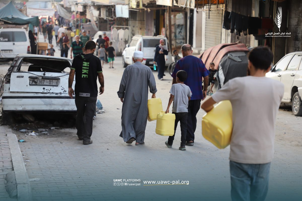 اتحاد لجان العمل الزراعي يمد العائلات النازحة من شمال قطاع غزة بـ 500 جالون لتأمين مياه الشرب